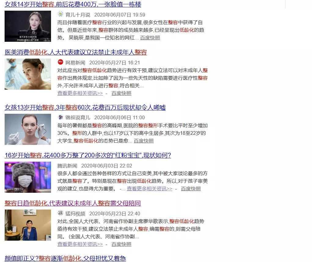 哪些人在消费问题上必须求助于父母?自然是没有经济能力的未成年人。哪些人在遇到分歧时以“无理取闹、无声抗议”来发起挑战?自然是心智不够成熟的未成年人。哪些人在重大问题决策上必须“过父母这一关”?自然是没有开始独立生活的未成年人。圈外人可能没有意识到,如今医美整容用户低龄化趋势已经愈演愈烈。最近几年的两会上,已经反复有人大代表建议,通过立法等手段保护未成年人远离医美威胁,同时对涉事企业严惩。