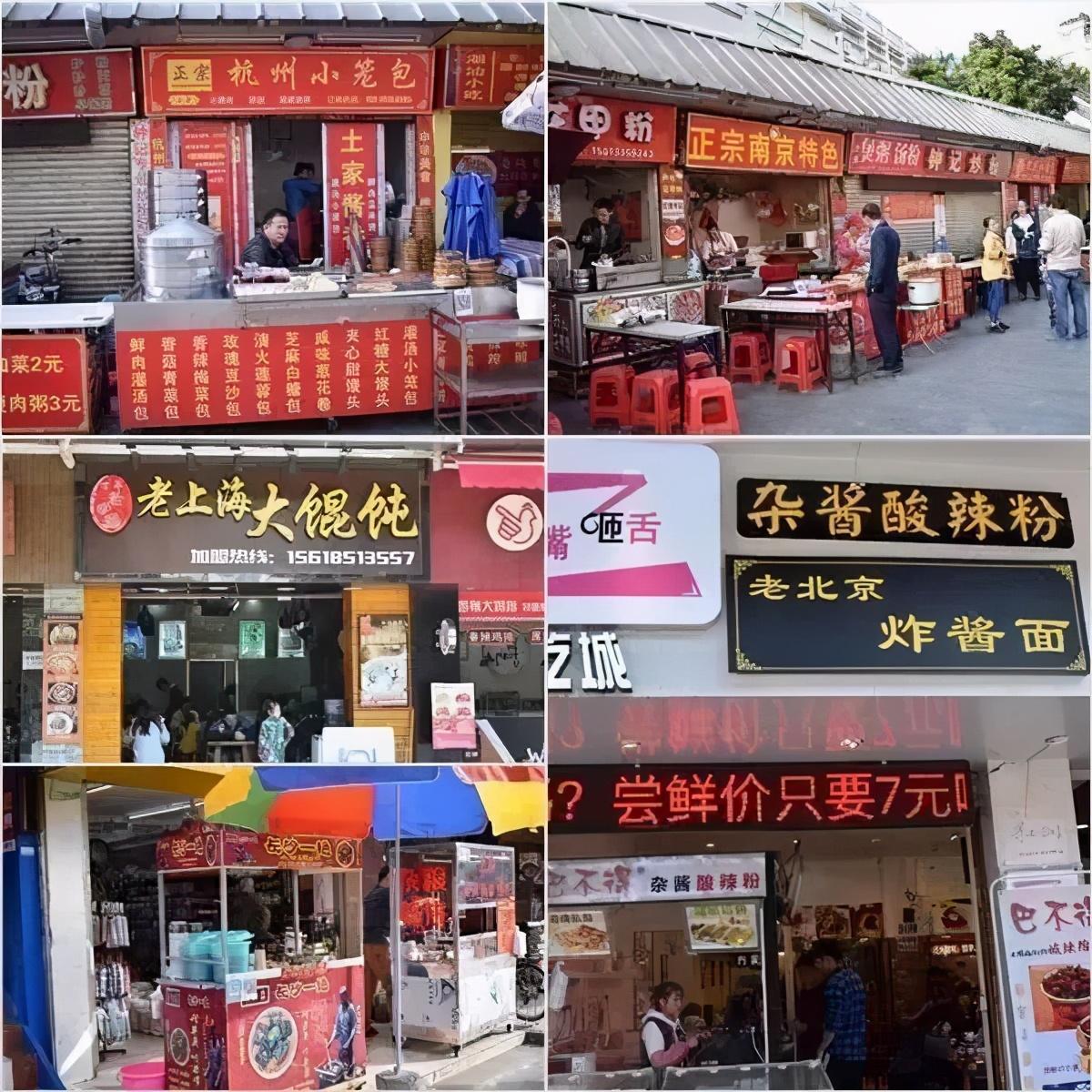 “龙眼洞”、“龙洞美食广场”两块招牌一南一北,大家习惯性统称为龙洞。这里可以说是汇集了各地美食:长沙臭豆腐、老广牛杂煲、重庆酸辣粉、老上海馄饨、杭州小笼包……