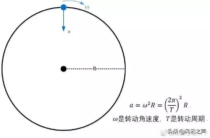 做匀速圆周运动的物体,是有一个加速度的。虽然速度的大小不变,但方向不断改变,随时都在拐弯。这个加速度的方向指向圆心,大小由下面这个公式给出。