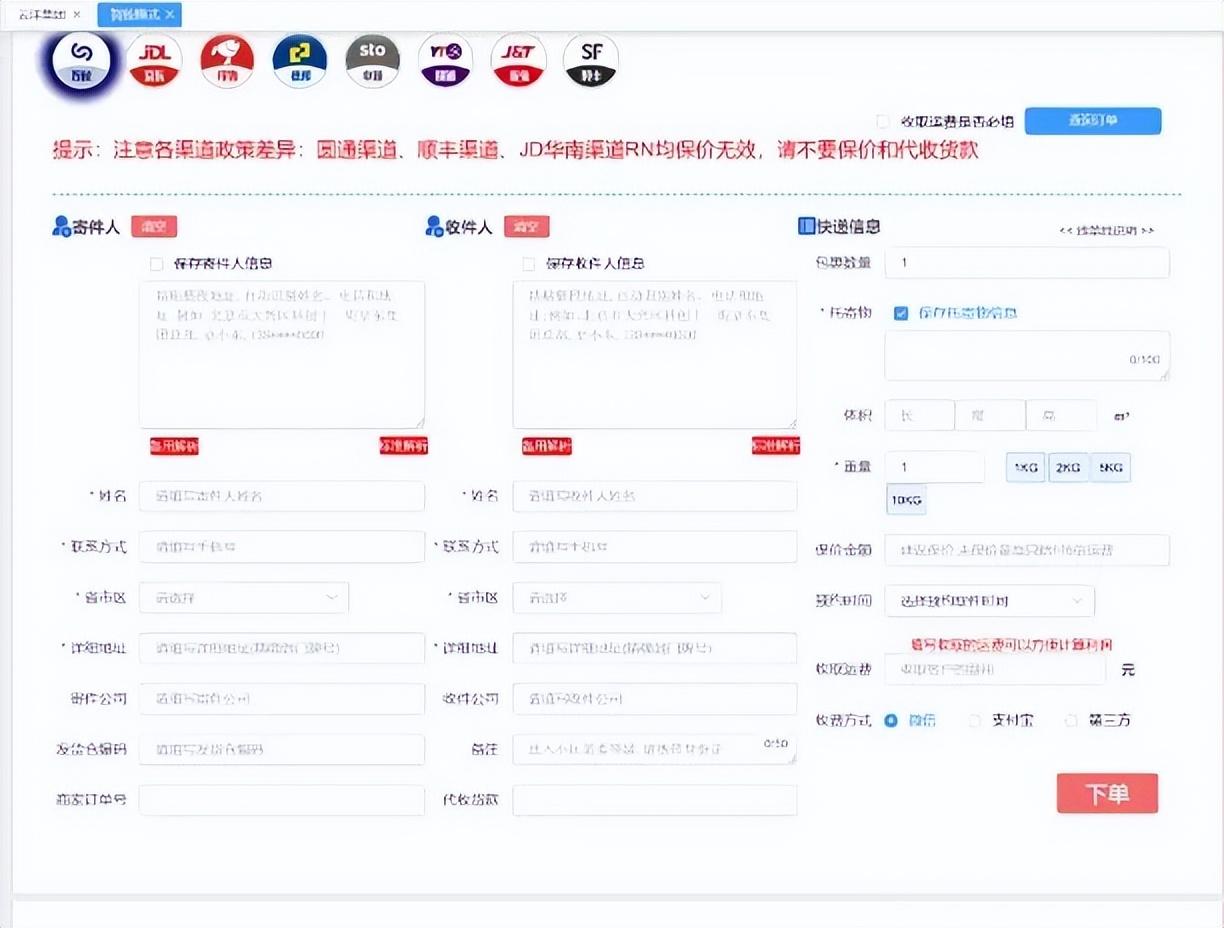 因为是来自商家账户,所以一般是给B端用户使用,去帮助C端用户进行代下的话,客户遇到问题都是直接找官方投诉,所以导致渠道被封,需要经常更换渠道,所以快递价格是在变动的尤其是京东,很容易掉渠道。这也是后期大伙往快递CPS方法发展需要解决的点。