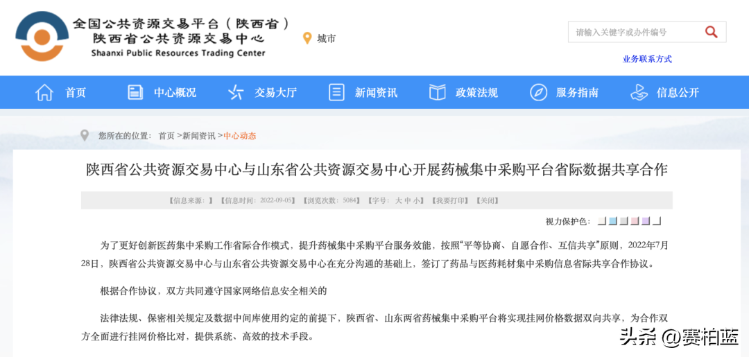 陕西与山东,两省公共资源交易中心共同签订了“药品与医药耗材集中采购信息省际共享合作协议”。