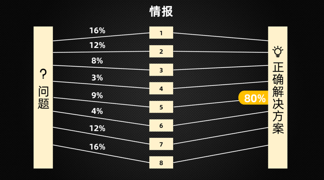 大多数人都低估了情报的重要性。这里可以用大牛张三,和普通人李四的视角举个例子,看看从遇到问题到提出正确解决方案,两者成功概率的差异。
