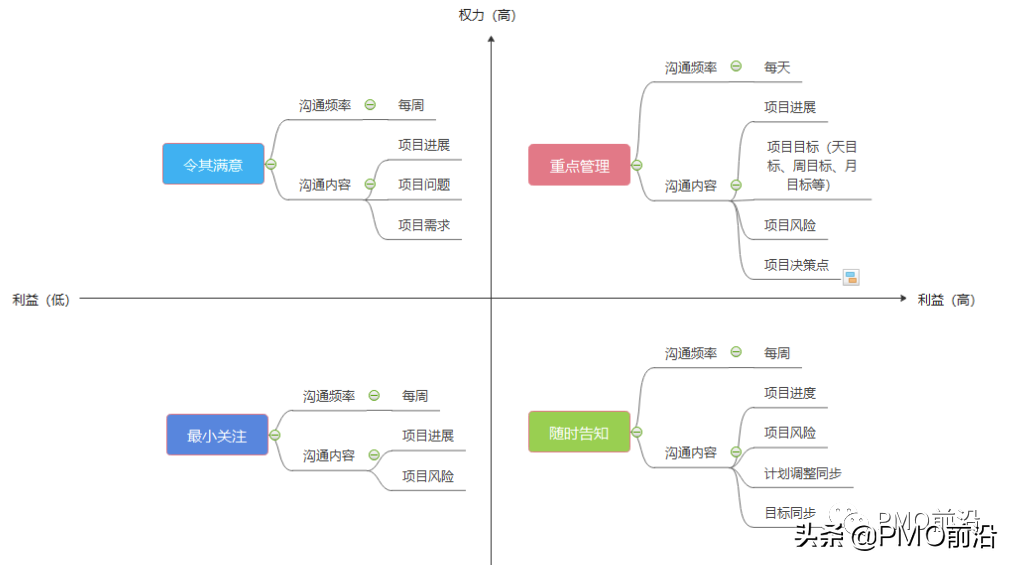 高利益高权力,比如说发起人(sponsor),必须要重点管理,及时汇报;