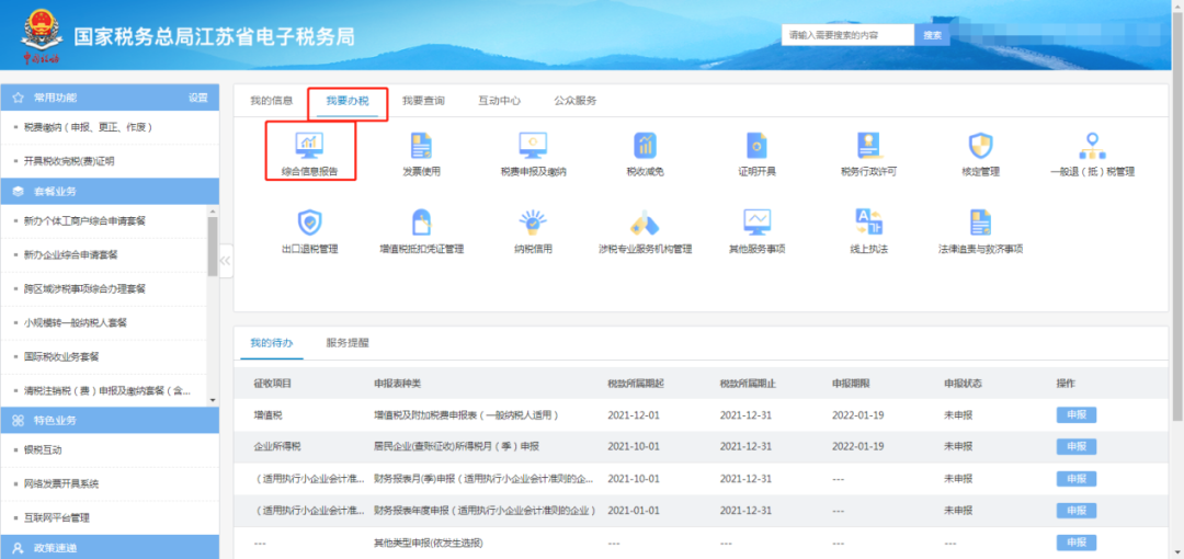 01首先相关人员登录电子税务局,点击“我要办税——税费申报及缴纳”,进入对应的财务报告月季申报或者年度申报。