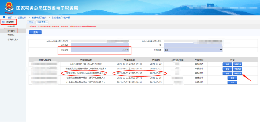 查询已申报的财务报表数据的操作方法: