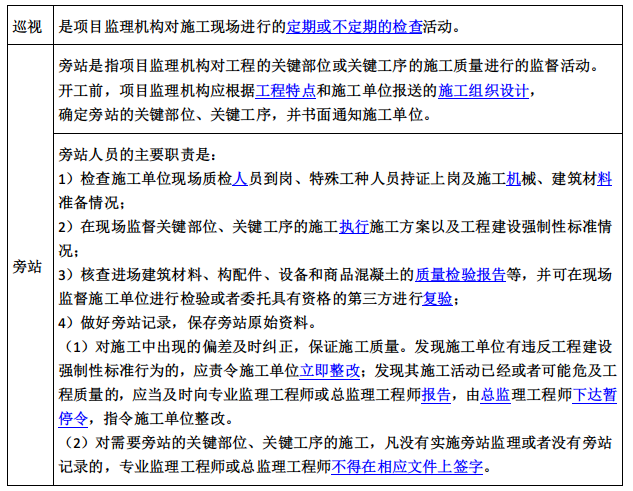 (5)进场的设备:专业监理工程师应会同设备安装单位、供货单位等的有关人员进行开箱检验,检查其是否符合设计文件、合同文件和规范等所规定的厂家、型号、规格、数量、技术参数等,检查设备图纸、说明书、配件是否齐全。