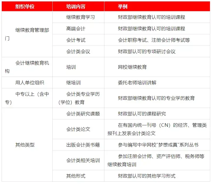 财政部会同人力资源社会保障部根据会计专业技术人员能力框架,定期发布继续教育公需科目指南、专业科目指南,对会计专业技术人员继续教育内容进行指导。这里需要注意!很多通过了资产评估师、税务师考试的朋友以为这两个证书也可以折算学分,实际上并不能!