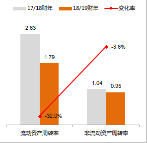 (2)然后在a的基础上,再用18/19财年的总资产周转率替换17/18财年相同指标,然后与a计算的权益净利率计算差额,得到总资产周转率周转率变化对权益净利润的影响;