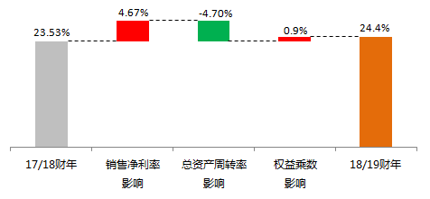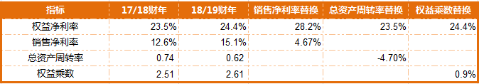 (3)最后用18/19财年权益净利润减去b阶段计算出来的权益净利率,得到权益乘数变化对权益净利率的影响。