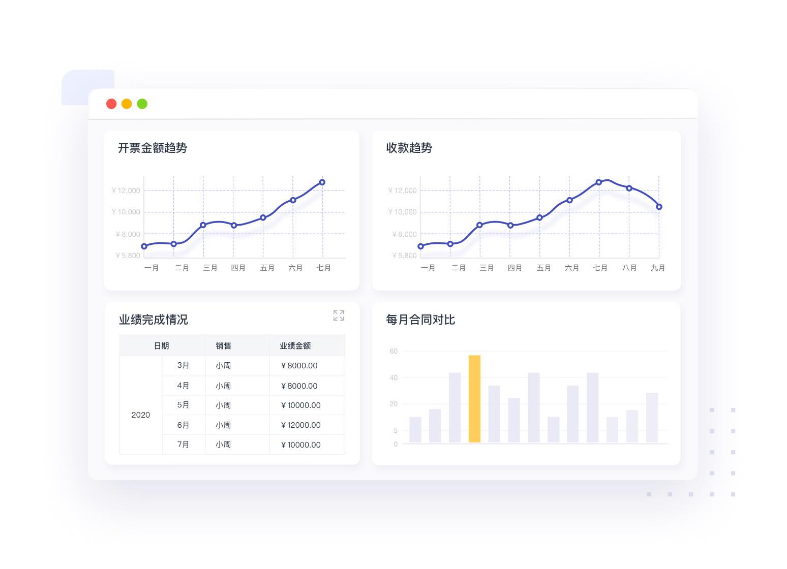销售个人也可以通过报表,实时掌握自身的业绩情况及每月的订单的收款趋势等信息。