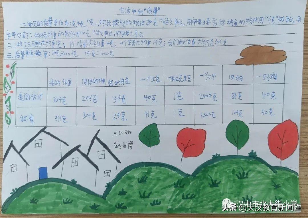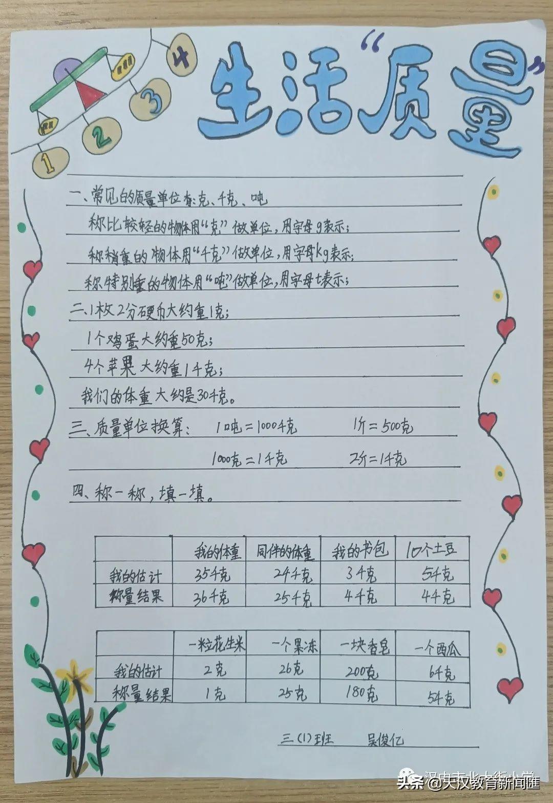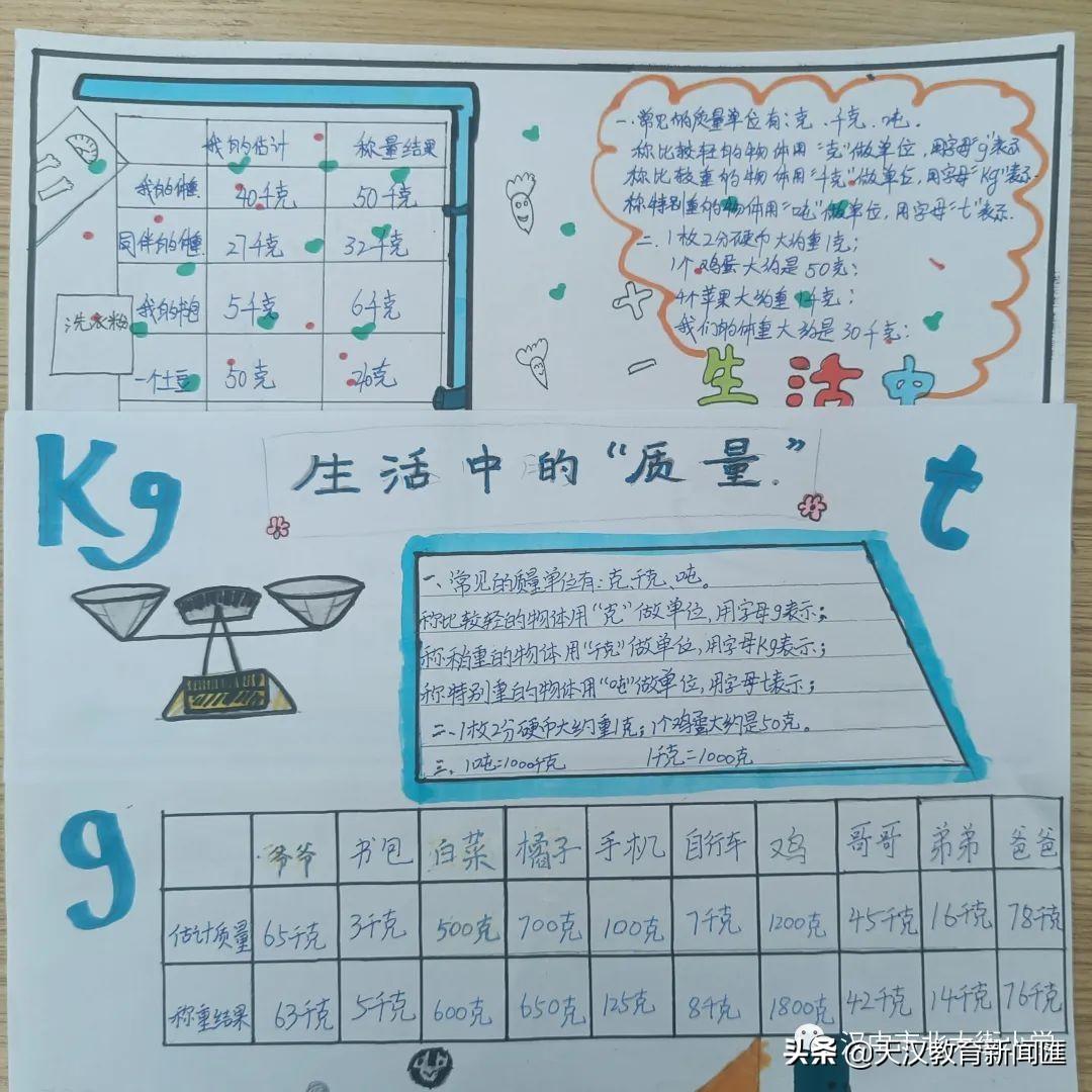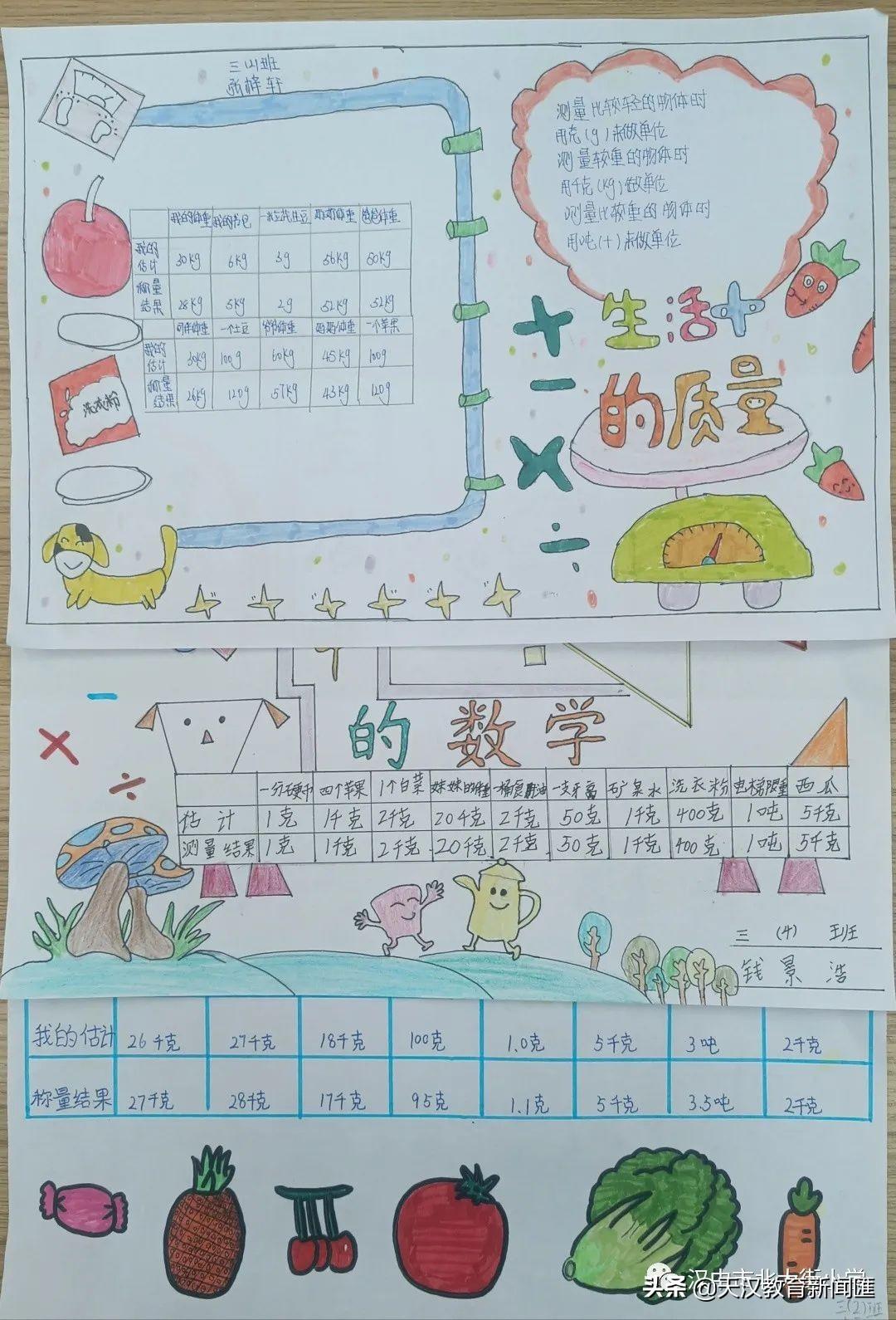 千克、克、吨是生活中常见的质量单位。学生通过生活实例领悟质量单位的特点,将学科融合,实现跨学科学习,用“数学小报”的形式表达自己的所学、所想、所悟。