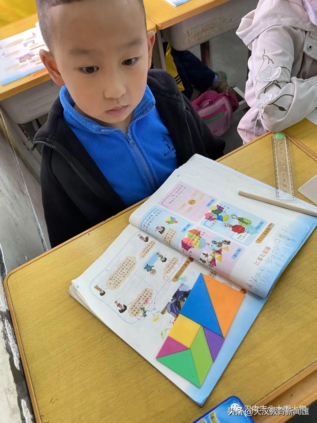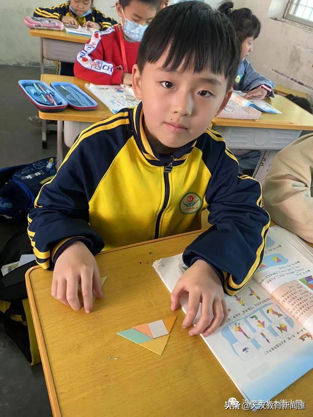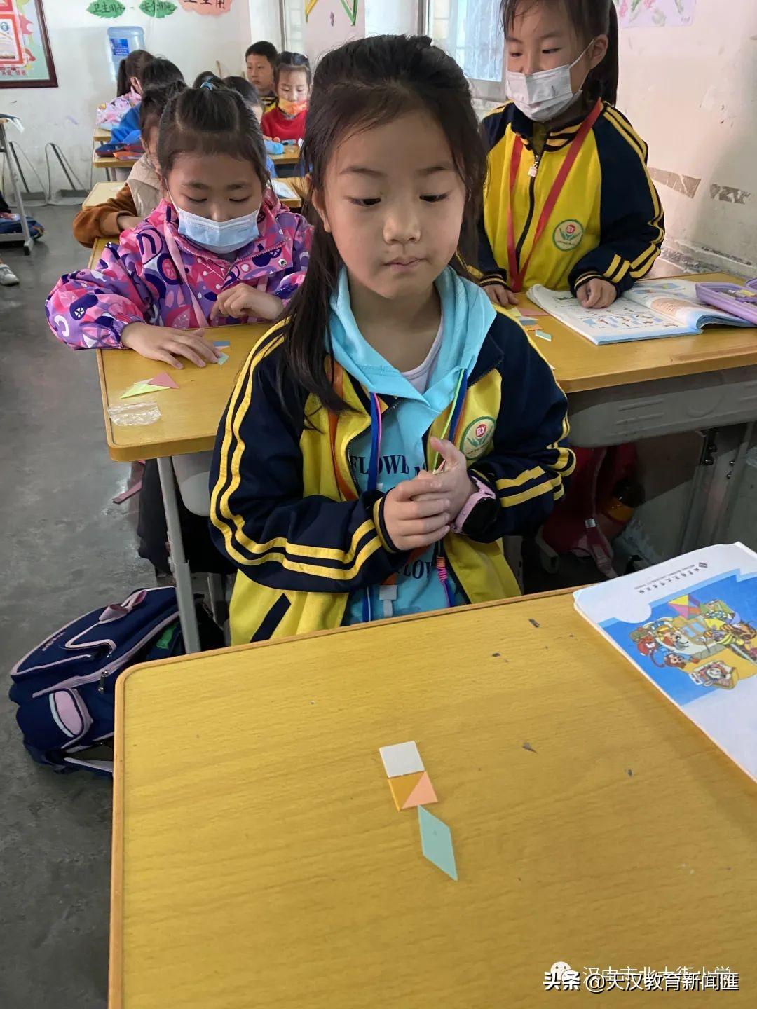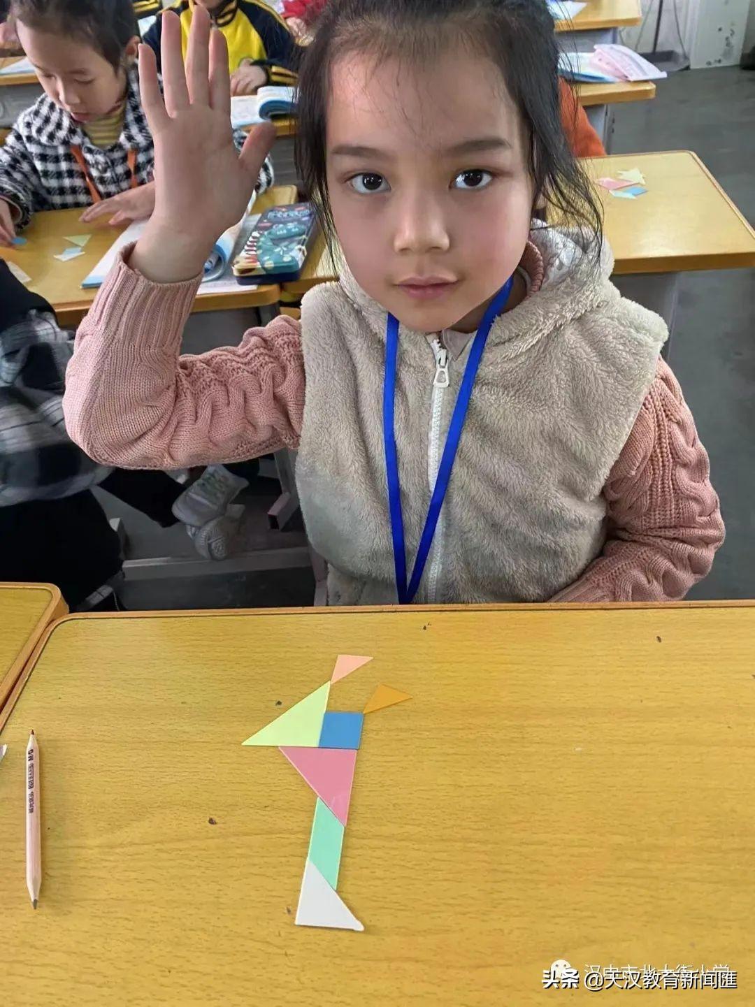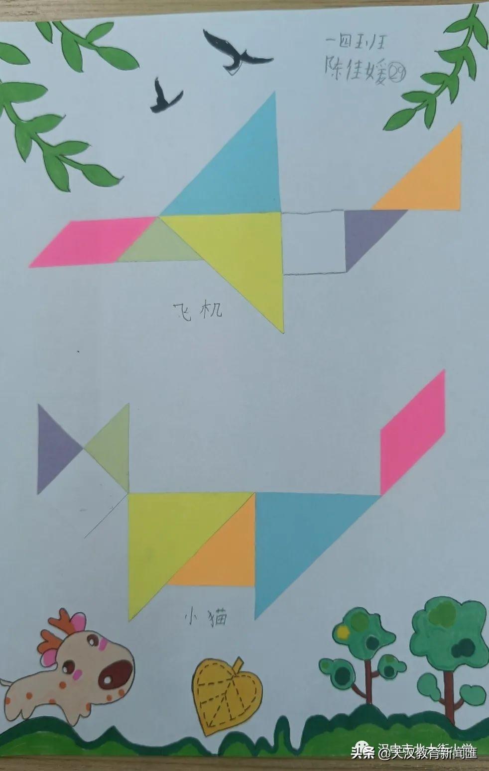 学生用七巧板拼图熟悉学过的的平面图形,初步认识平行四边形。在玩中学既动手又动脑,拓展了学生视野。