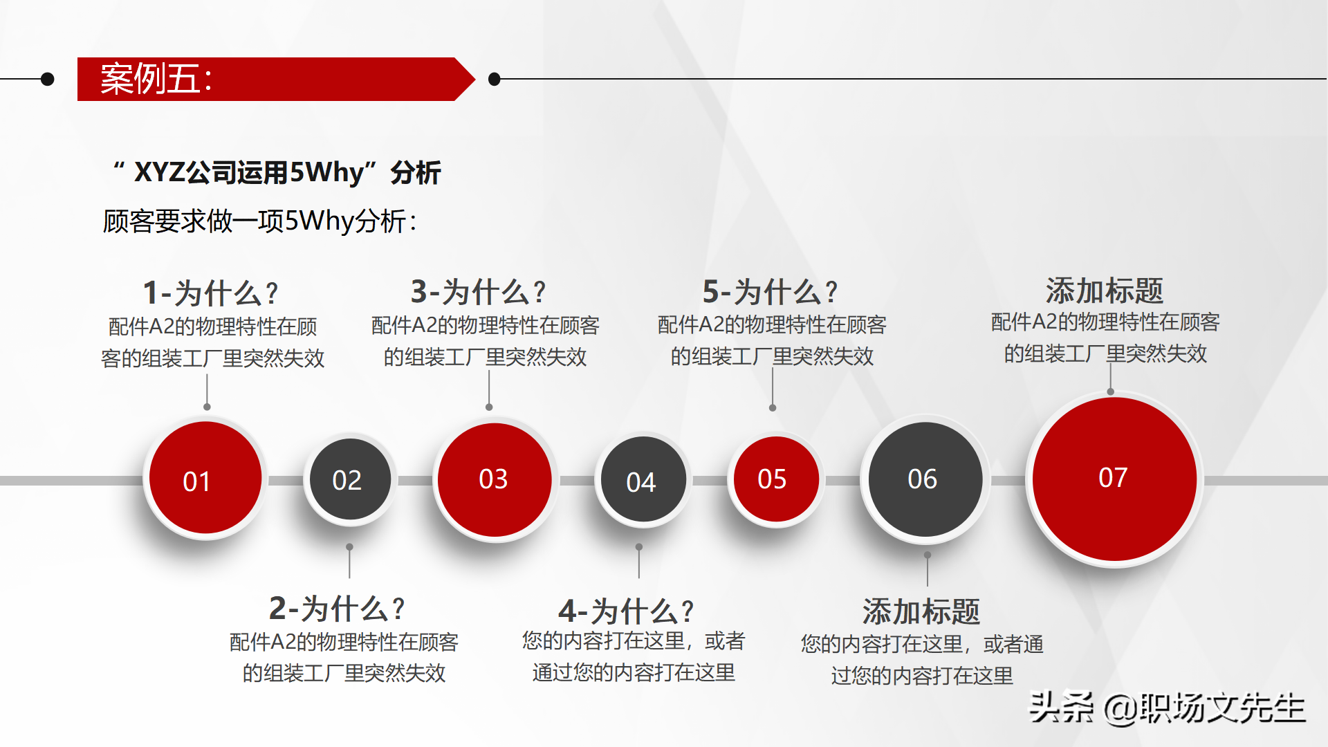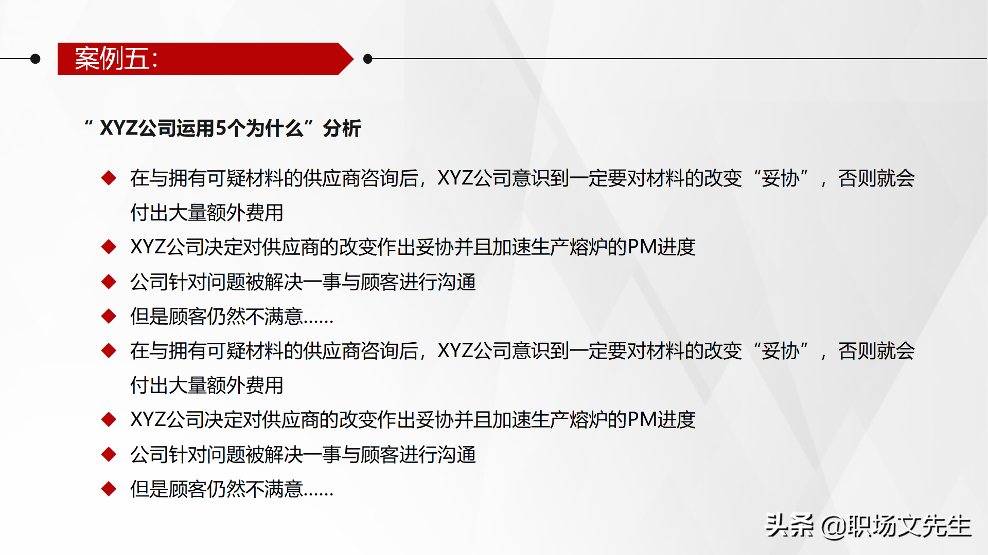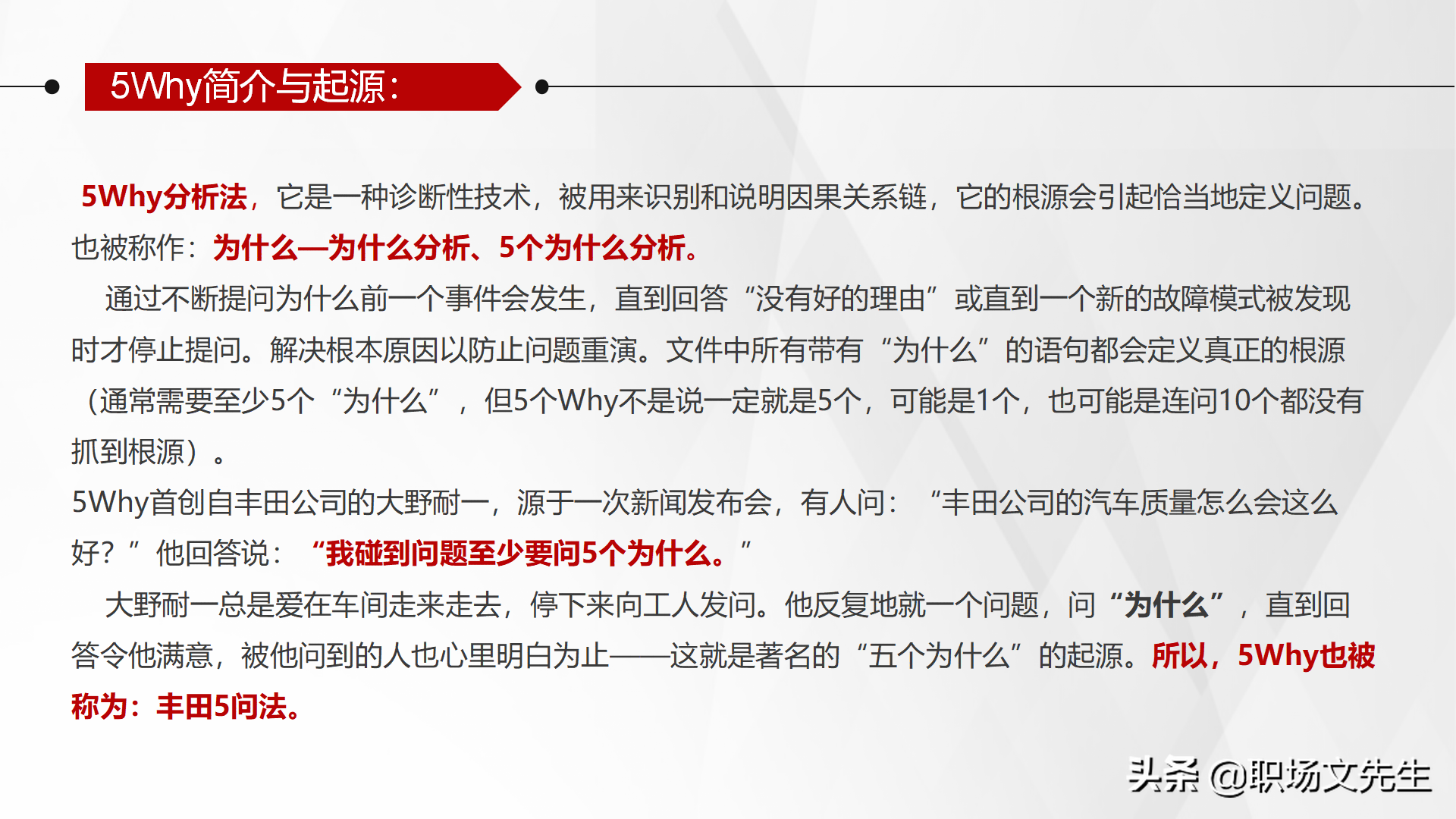 版权声明:我们致力于保护作者版权,注重分享,被刊用文章【5w分析法案例范文(生产培训系列课程)】因无法核实真实出处,未能及时与作者取得联系,或有版权异议的,请联系管理员,我们会立即处理! 部分文章是来自自研大数据AI进行生成,内容摘自(百度百科,百度知道,头条百科,中国民法典,刑法,牛津词典,新华词典,汉语词典,国家院校,科普平台)等数据,内容仅供学习参考,不准确地方联系删除处理!;