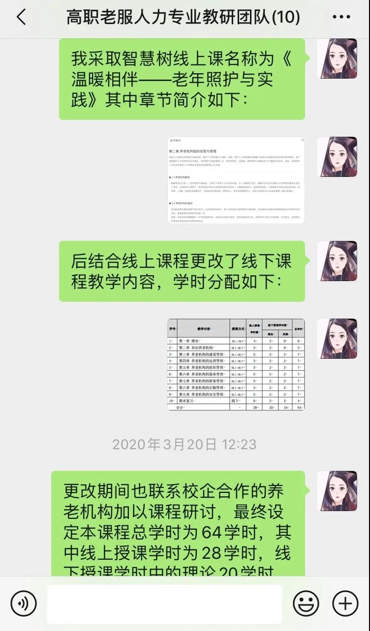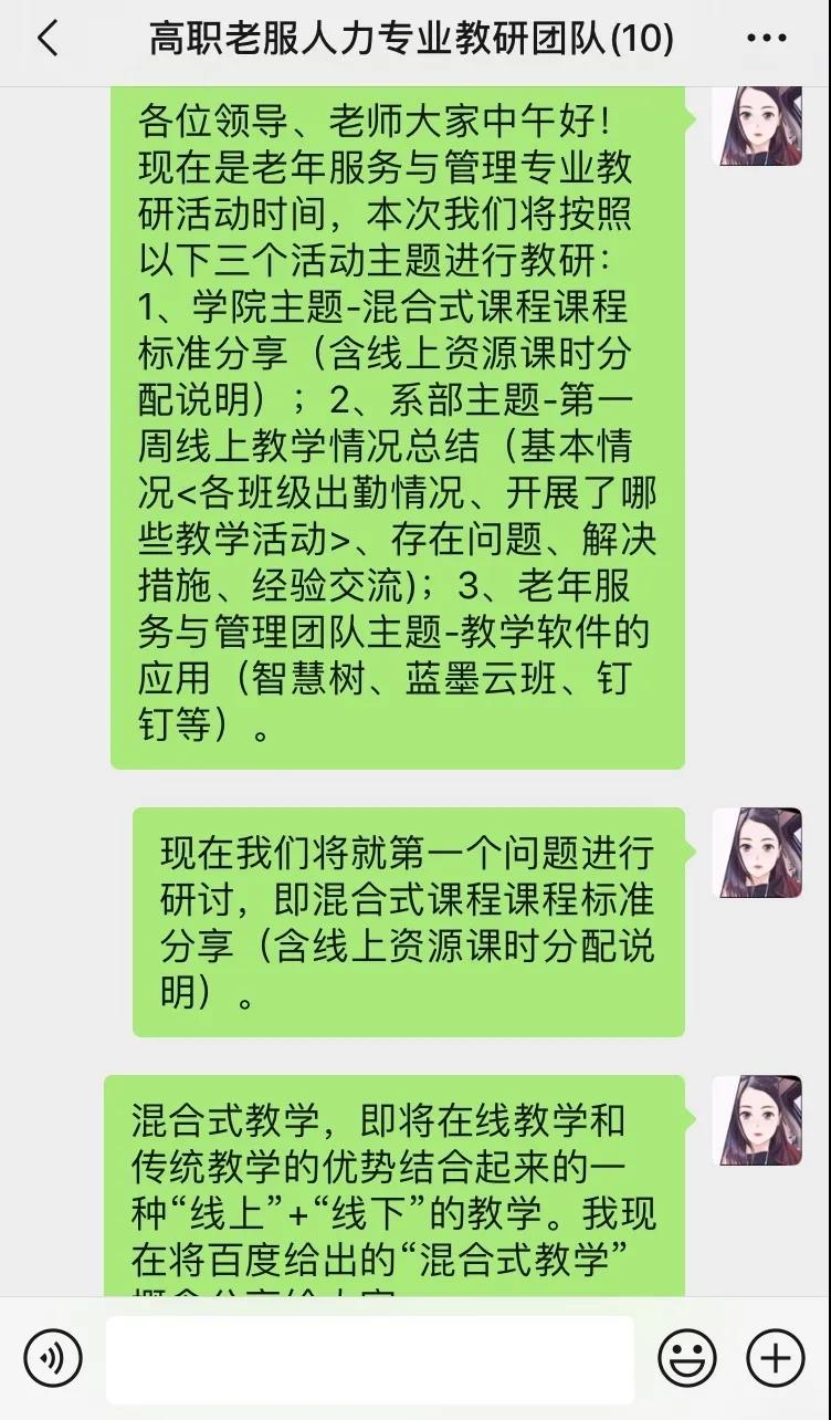 疫情期间无法面对面的进行教研,线上课开课在即,在校领导的引导下我带领老年服务与管理专业团队的老师们在微信平台中进行了网络教研。