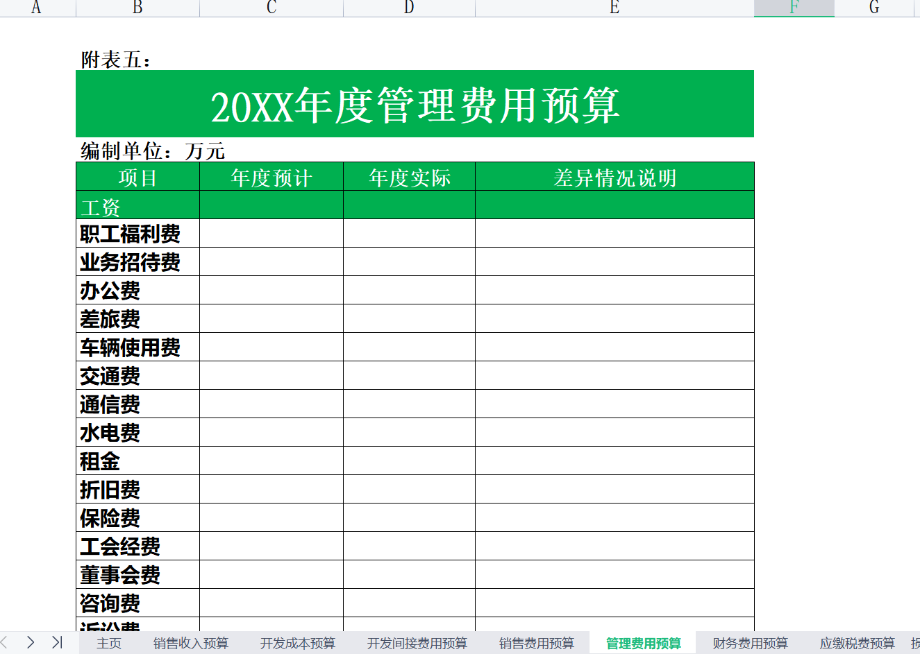 前段时间,一个做房地产财务的朋友就跟我提到了这事,她也是第一次在这个行业工作,不太懂,但老板却让她想办法做一下,为了能保住工作,也为了能体现自己的能力,她只能硬着头皮上了,这不就来问我了。我特意花了周末两天时间,给她做了这12张表格,都是相关费用预算的表,希望能给她一点帮助。