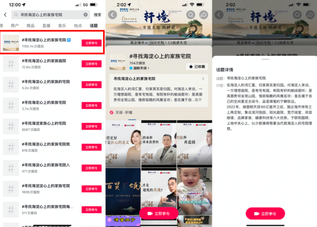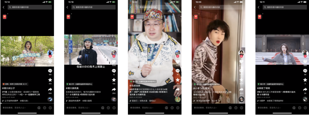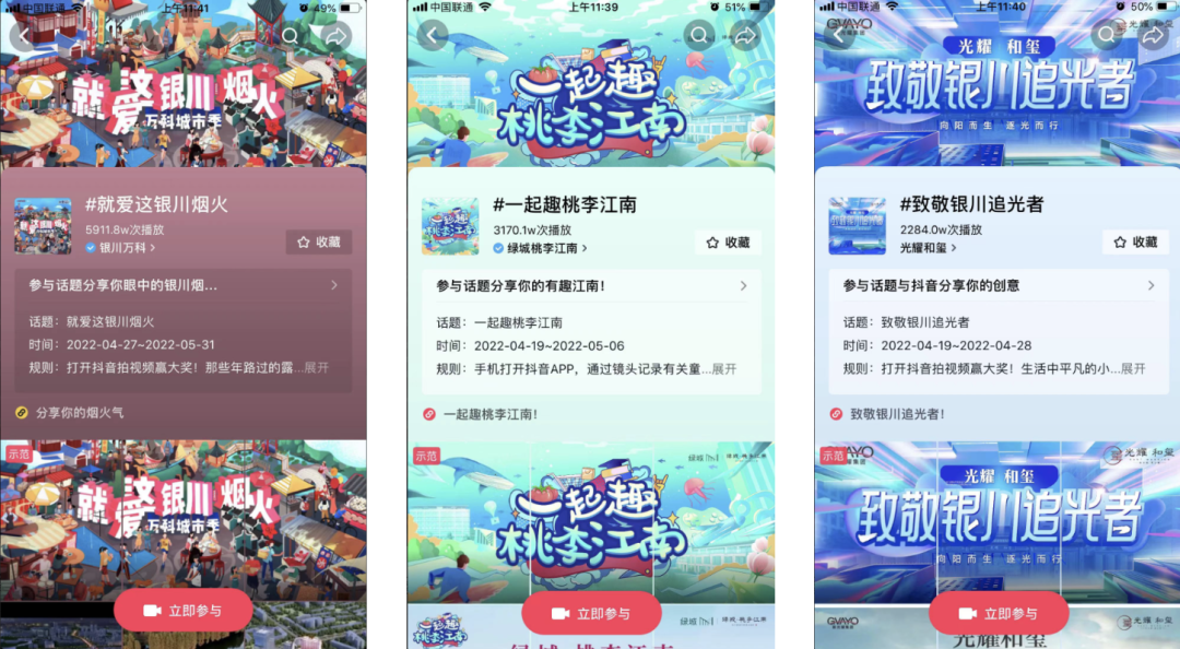 首先,巨量引擎结合宁夏万科、绿城、光耀的品牌特性,分别以“就爱这银川烟火”、“一起趣桃李江南”、“致敬银川追光者”的城市话题进行互动;
