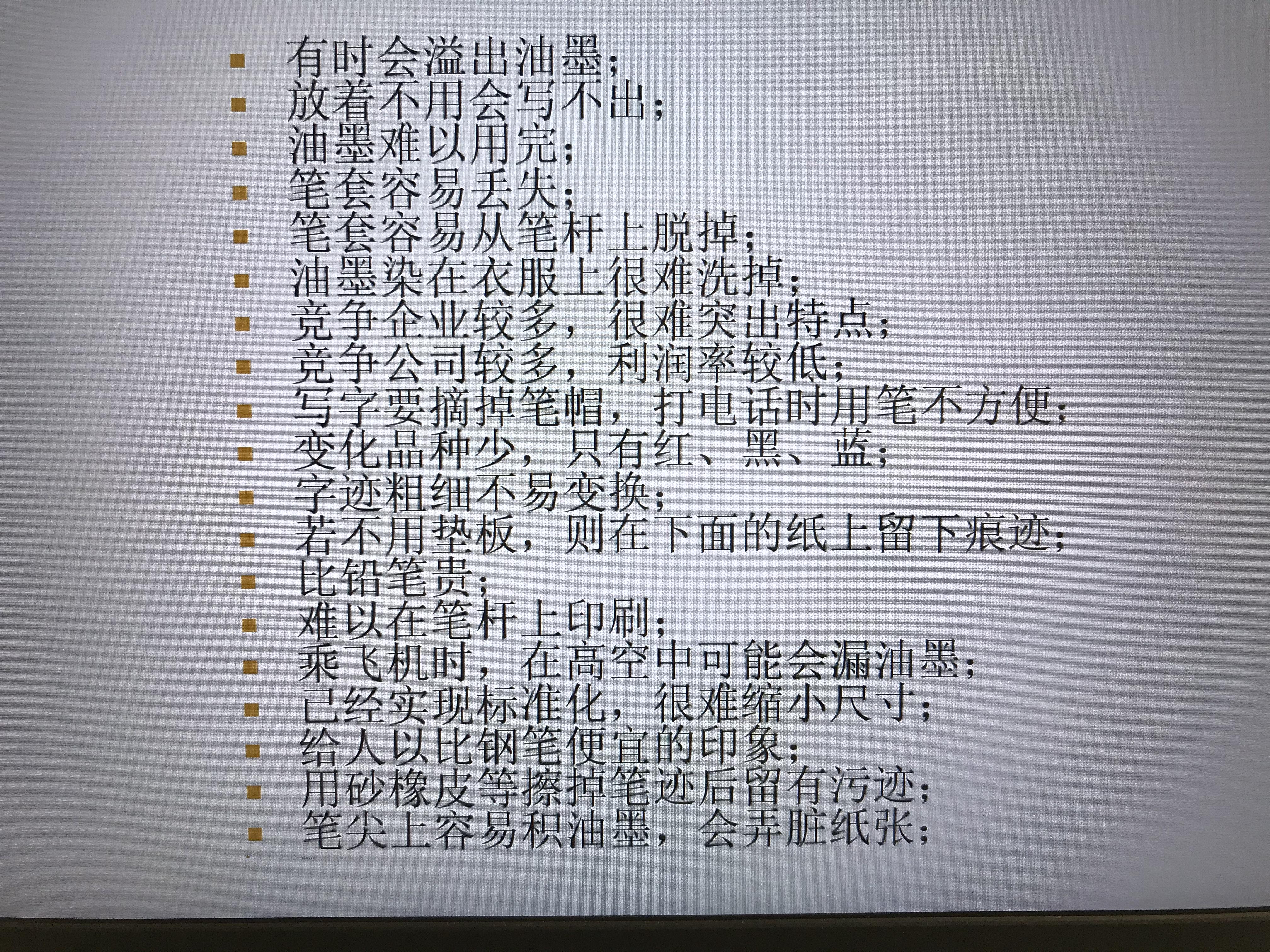 比如“列出圆珠笔的缺点",每列下一点都要给它编号,尽量具体地填写并分类整理;