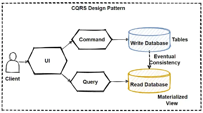 通过这种隔离,对于读数据库和写数据库,我们甚至可以使用不同的数据库类型,如使用 NoSQL 文档数据库进行读取,使用关系数据库进行 CRUD 操作。