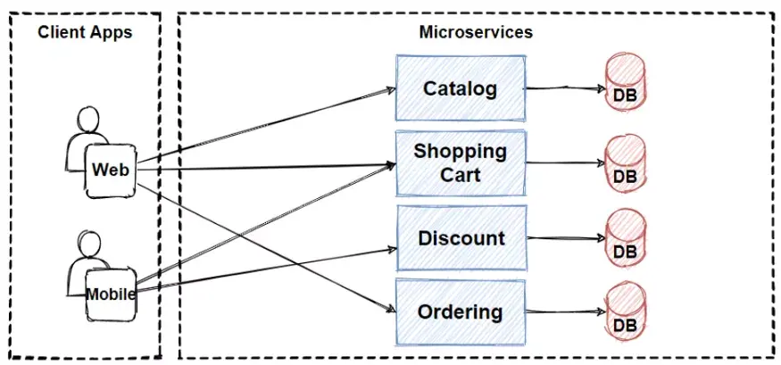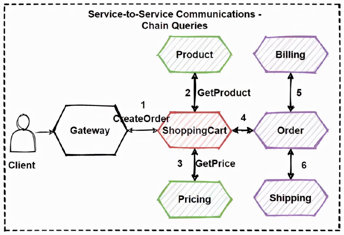 微服务是独立的,只执行特定的功能要求。在我们的电子商务应用中,我们有产品、购物车、折扣、订单等微服务,它们需要彼此交互来满足客户的要求。这意味着它们需要频繁地交互。而这些交互大多是查询每个服务的数据以进行聚合或执行逻辑。