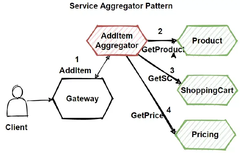 利用消息代理系统将微服务之间的通信变成异步方式,我们将在下一节中看一下怎么做。使用服务聚合模式将一些查询操作聚合到一个 API 网关。为了尽量减少服务之间的通信,我们可以使用服务聚合模式。基本上,服务聚合设计模式是接收来自客户端或 API 网关的请求,然后分配给内部多个后端微服务,再将结果合并,并在一个响应结构中发给请求发起人。