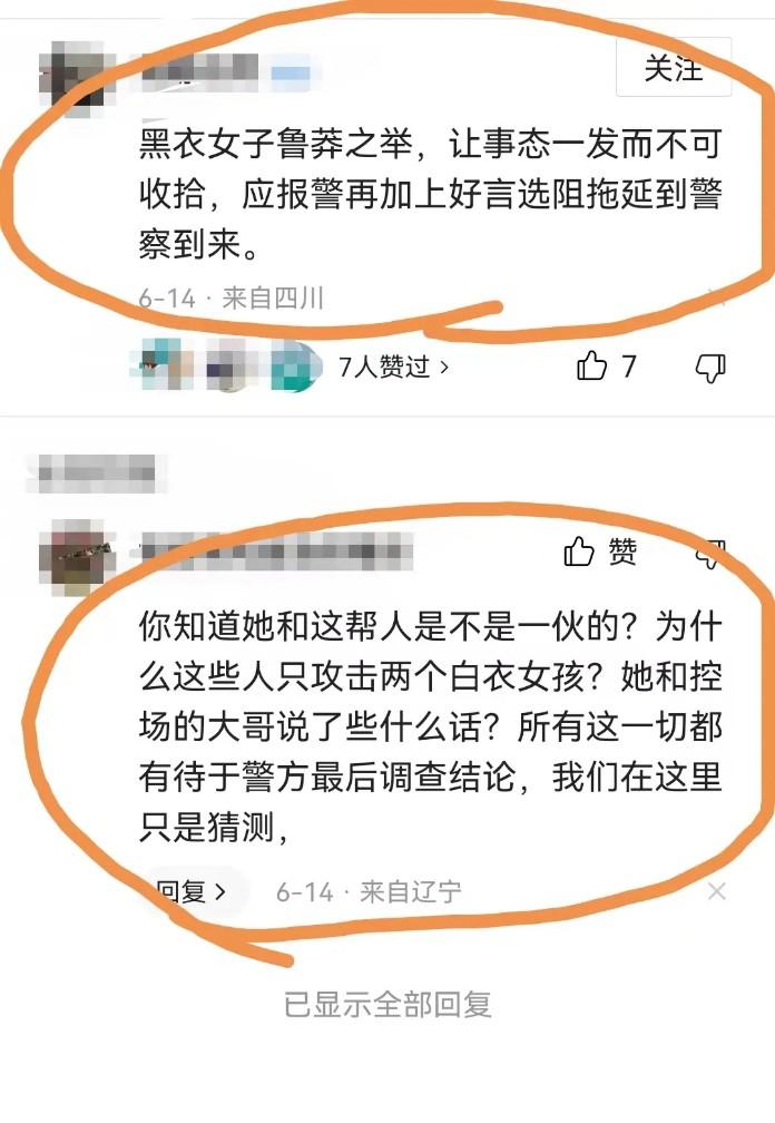 甚至还有更过分的网暴,竟然揣测黑衣女生和打人者是一伙的: