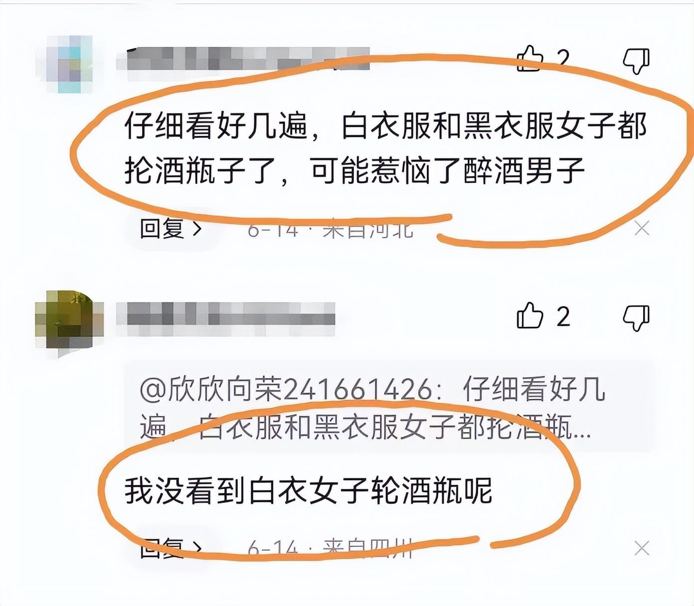 “就是因为黑衣女生扔了酒瓶子,才惹恼了醉酒男子。”