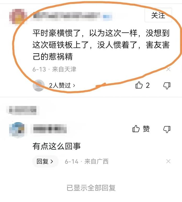 “平时豪横惯了,以为这次也一样,没想到砸铁板上了,没人惯着了,害有害己的惹祸精。”