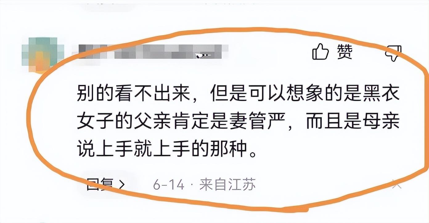 “别的看不出来,但是可以想象,黑衣女生的父亲肯定是妻管严,而且母亲也是说上手就上手的那种。”