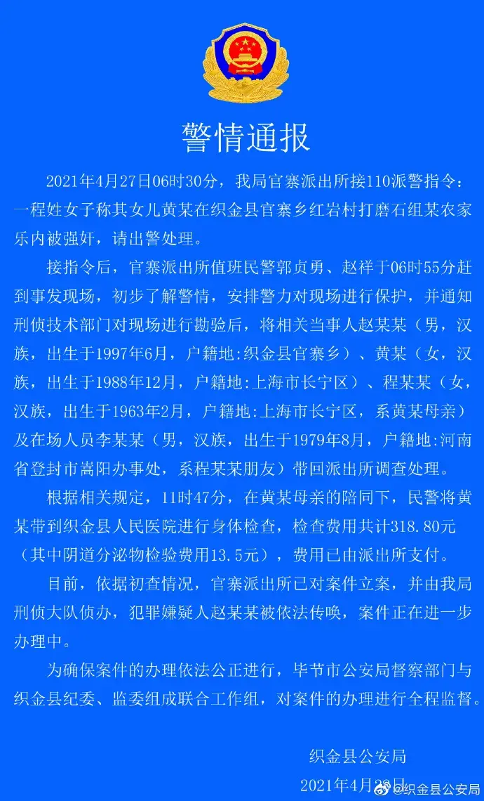 网传一女游客在某农家乐遭入室强奸,还被索要13.5万元检查费?警方通报来了
