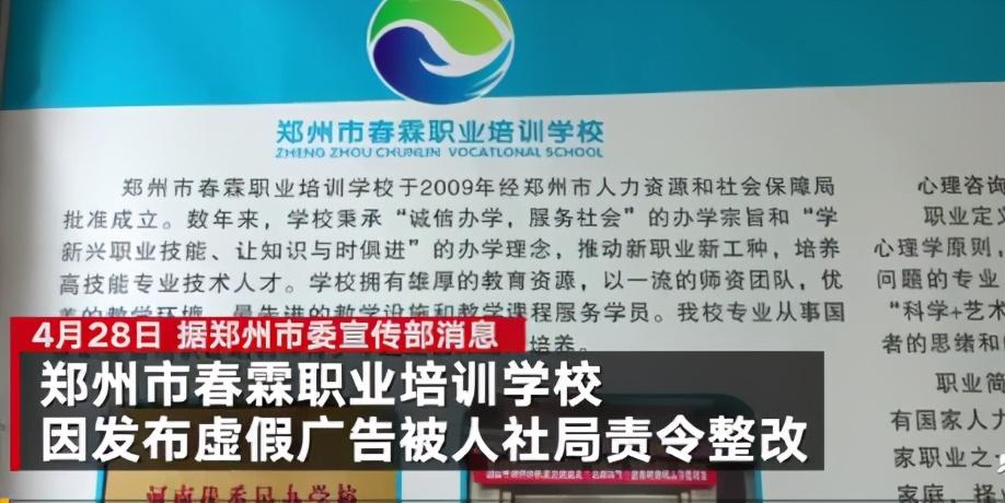 9.河南郑州春霖职业培训学校停业整改,涉“熟蛋返生”论文校长已辞职:近日,河南郑州春霖职业培训学校校长在《写真地理》杂志上发表“熟鸡蛋返生孵小鸡”的论文引发舆论质疑。28日,经相关部门联合调查,春霖职业培训学校因发布虚假广告,被郑州市人力资源和社会保障局责令整改,暂停招生和教学活动。另据了解,发布论文的校长郭某已辞职。(人民日报)