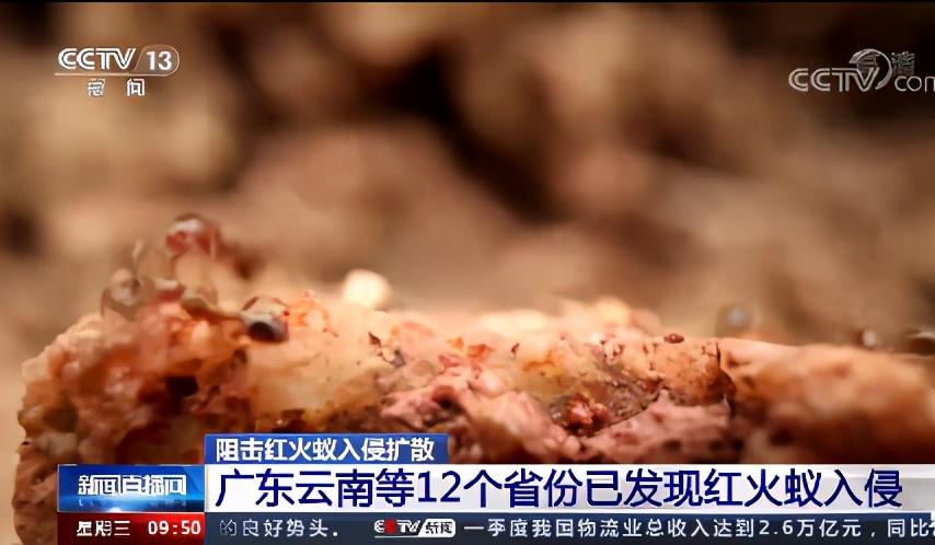 10.注意!红火蚁已扩散至我国12个省份:截至目前,广东、云南等12个省份均已发现红火蚁入侵。有关部门在对100多个红火蚁传入地调查发现,95种花卉苗木中有27种携带红火蚁,草皮、苗木携带入侵比率为85.2%。专家提醒,红火蚁攻击性强、叮咬毒性大,被咬后应立即用肥皂水清洗、冰敷,若反应剧烈及时就医。(央视网)