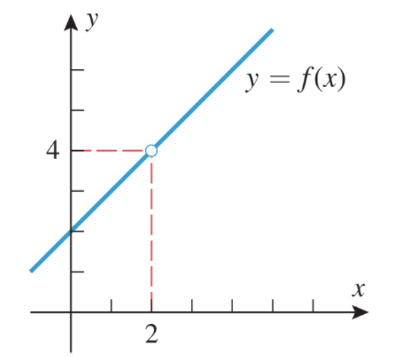 所以当你的车子无限的向x=2这一点开去的时候,你大可不必心惊胆战地踩刹车,因为f(2)这一点已经把4给堵上了。意味着f(2)这一点的值就是函数在x趋近于2时的极限值,即: