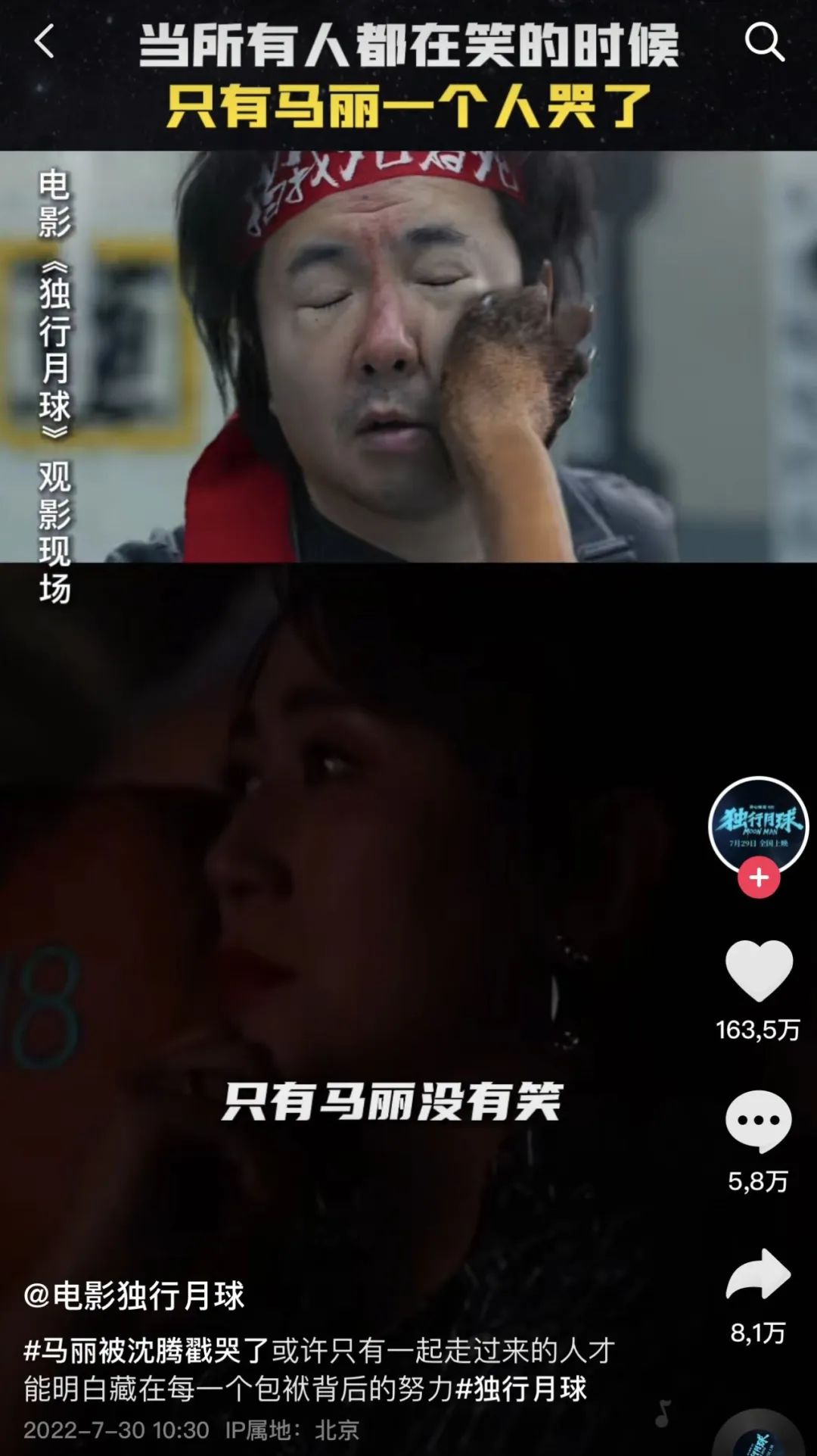 直到8月13日,该片官方抖音账号发出“这世界就是这么残酷 努力10年就是没有回报”的视频,收获了138万点赞,与上映初期仅几万点赞的视频形成鲜明反差,事情来到了转折点。