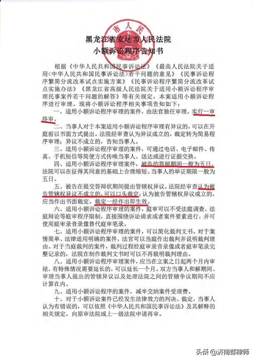 可以看出,小额诉讼程序是一审终审,也就是没有上诉的机会。答辩期很短,不是15天,一般是5天到7天,甚至有3天的,所以提出管辖 权异议的期间很短,而且法院认为异议不成立的,可以口头裁定,裁定也是一裁终审,没法上诉。这样 ,只想利用管辖权异议拖延时间就不成了,除非真的从法律角度提出有力的异议,否则异议的意义不大。
