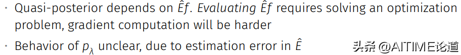 但是也存在问题:首先是 Gibbs 分布难以计算,对每个固定的f去计算拟似然值都需要解决一个优化问题,这是非常昂贵的。除此之外,由于对条件期望的估计误差,拟后验分布的频率学派行为并不是很清晰。
