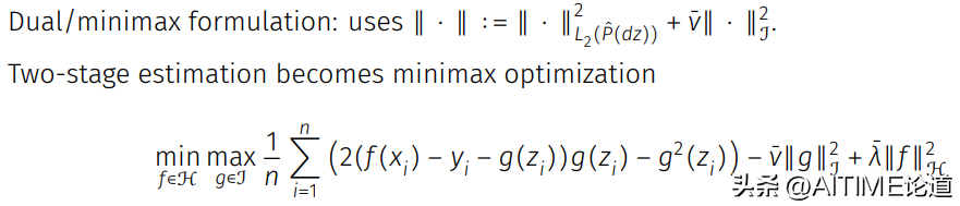 首先,我们要先能够计算条件值约束,即计算这样的条件期望算子。在这之后,我们就可以通过最小化近似条件值约束的方式来估计。但因为我们是有一组条件值约束的,我们需要通过下面公式做加权得到目标函数。