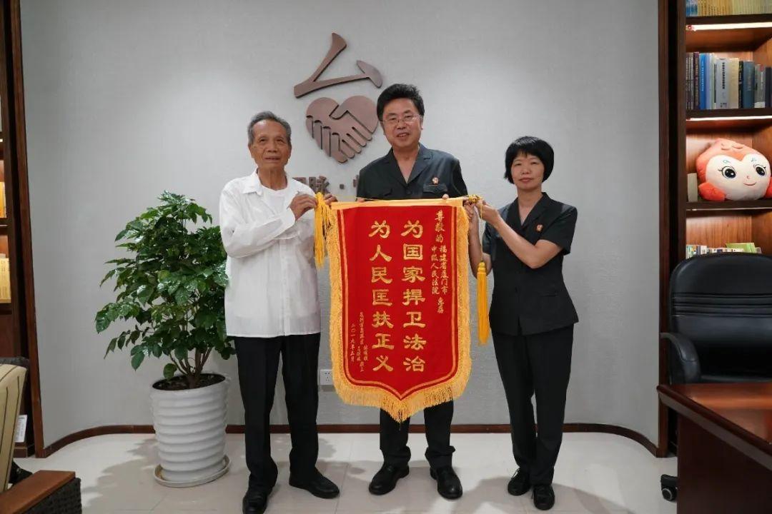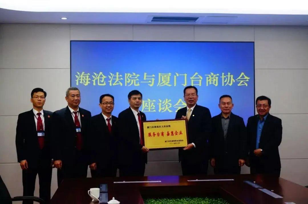 2019年3月,厦门市台商协会会长吴家莹带队走访海沧法院,并送来一面写有“服务台商、嘉惠企业”的牌匾,感谢两级法院多年来竭力为台胞、台商提供的优质司法服务。