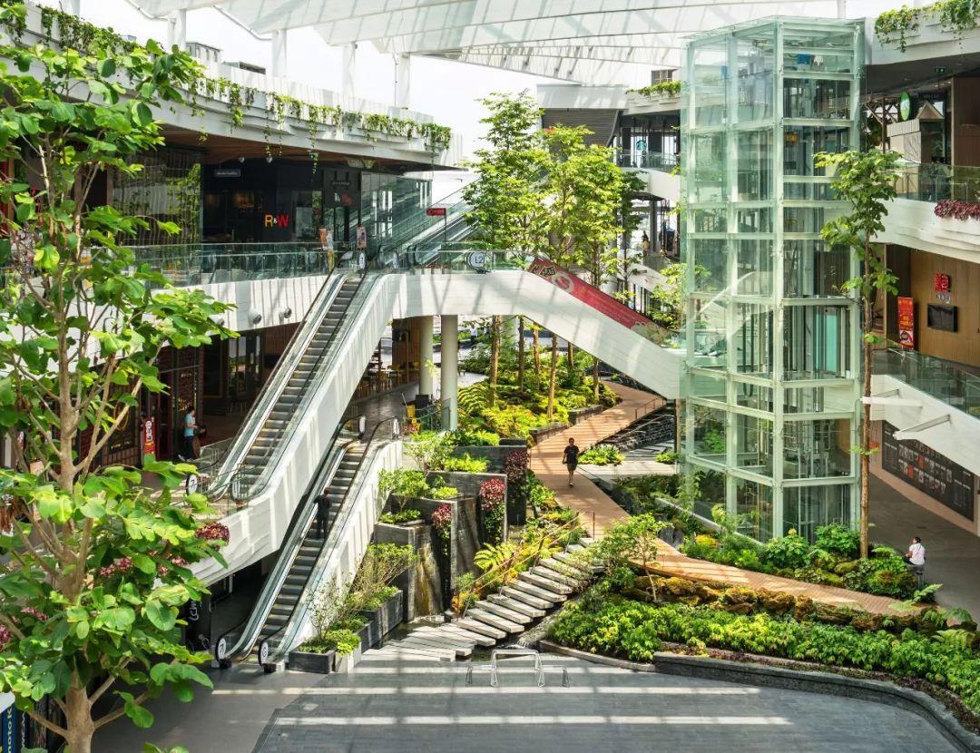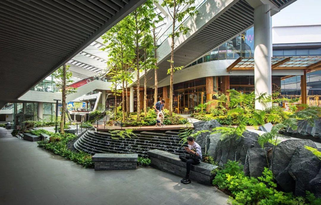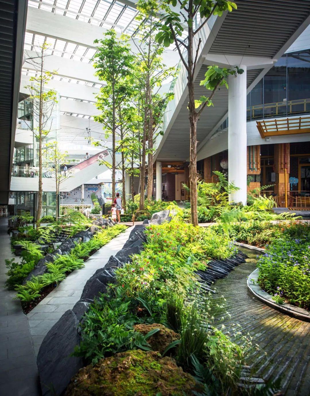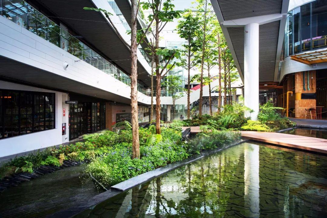 这样,小气候被调整到理想的人体舒适区域,同时还为植物生长提供附加的水分,这为每一位游客及商户提供了一种全新的景观体验。