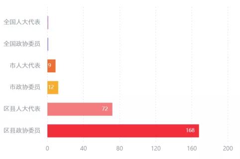 2020年末,全市律师中担任区县级以上人大代表和政协委员的263人,占2.37%。其中,全国人大代表、全国政协委员各1人;市人大代表9人,市政协委员12人;区县人大代表72人,区县政协委员168人。