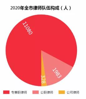 2020年末,全市专兼职律师11080人,占82.74%,较上年增长1054人,增长10.51%;公职律师(含法律援助律师,以下同)1983人,占14.81%,较上年增长346人,增长21.14%;公司律师328人,占2.45%,较上年增长74人,增长29.13%。2018-2020年专兼职律师、公职律师和公司律师持续增长,其中公职律师、公司律师增长尤为显著,体现了各级党委政府和企业对法治的重视。