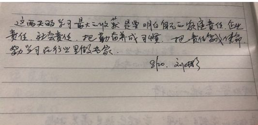 吴迪同学通过董权老师的授课,专注、坚持、勤奋、学习, 是这两天反复练笔的关键词,作为企业管理者更是受益匪浅。