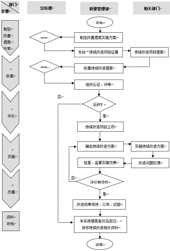 改进提案推行委员会是负责本厂质量改进提案工作的常设机构,下设审查小组与改进小组。
