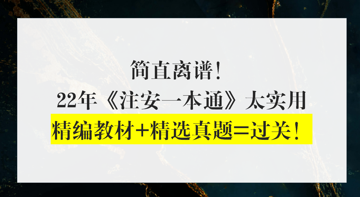22年精编的《注安一本通》才是真王炸,精选教材的重点内容进行汇总,配合历年的真题,帮助我们能够更好地理解。每一个必考点都配合着对应的解析,精准把握考点!