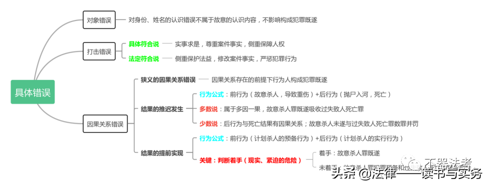 文末以思维导图的方式总结了事实认识错误的方法,简洁明了。更多笔记整理、法考资料及司法实务分享请关注本人公众号【不器法考】