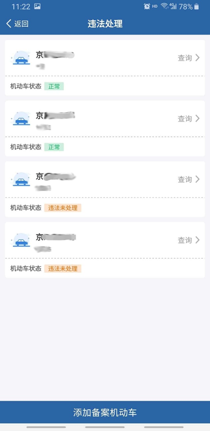 1. 注册好“交管12123APP”,备案需要处理的机动车和驾驶证,如下图所示。