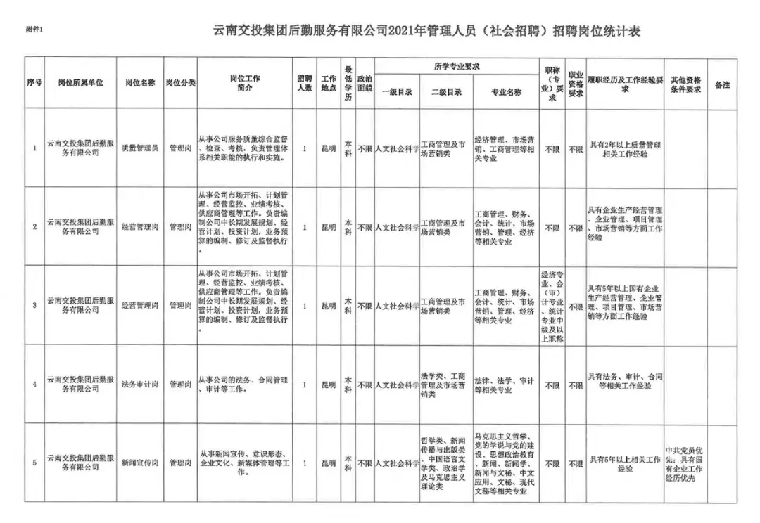 工作地点:常驻昆明,因工作需要时可派驻云、贵、渝、鄂三省一市范围内的运营项目工作或出差。