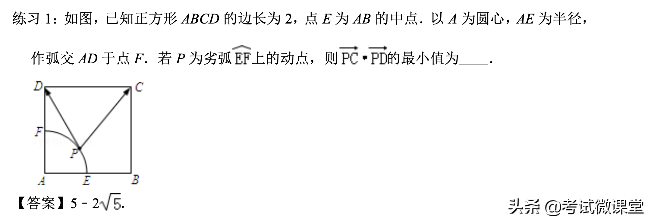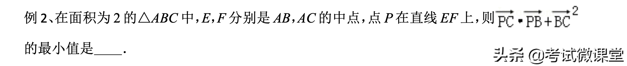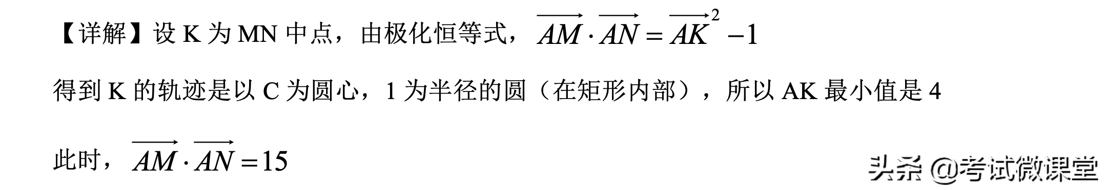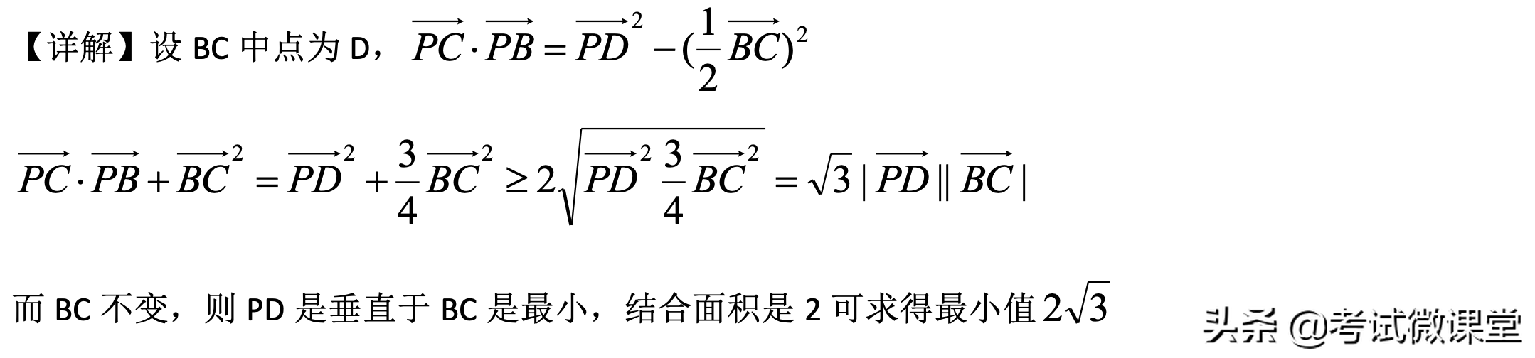 【分析】此题是最值问题,标准答案是坐标法。计算量较大,此时利用极化恒等式直接将数量积转化,利用均值非常简单。