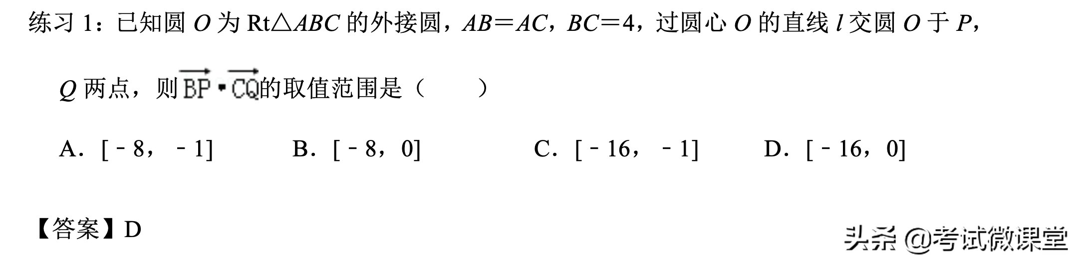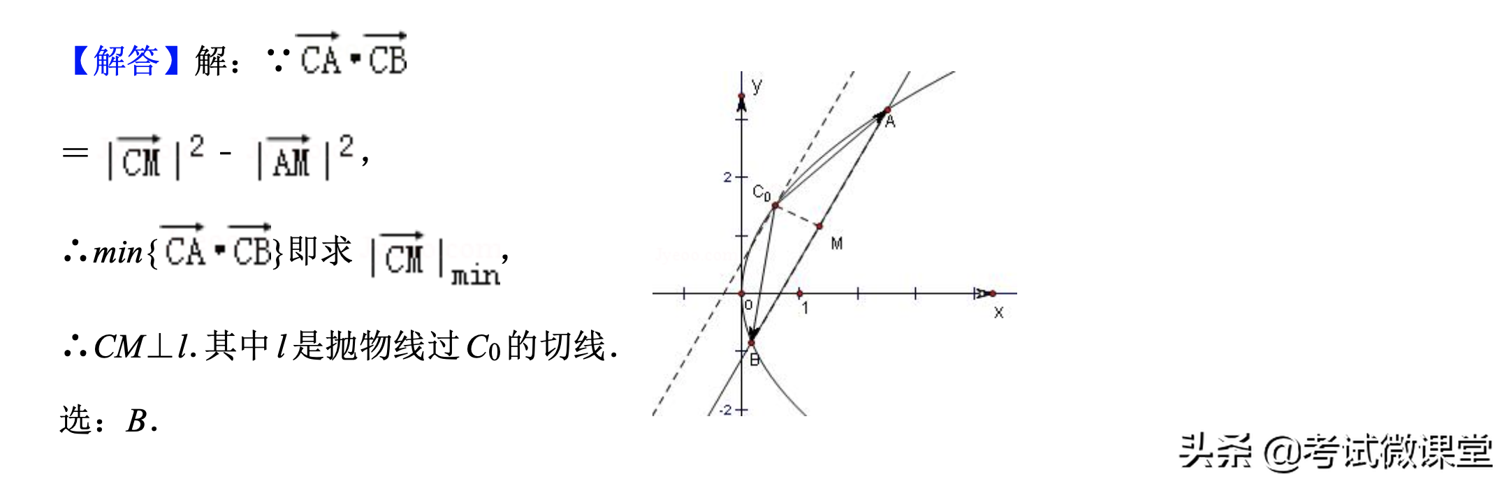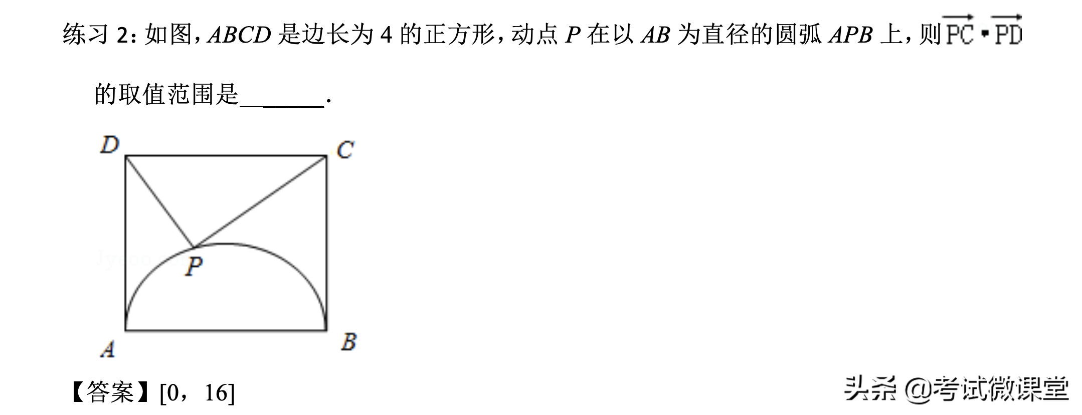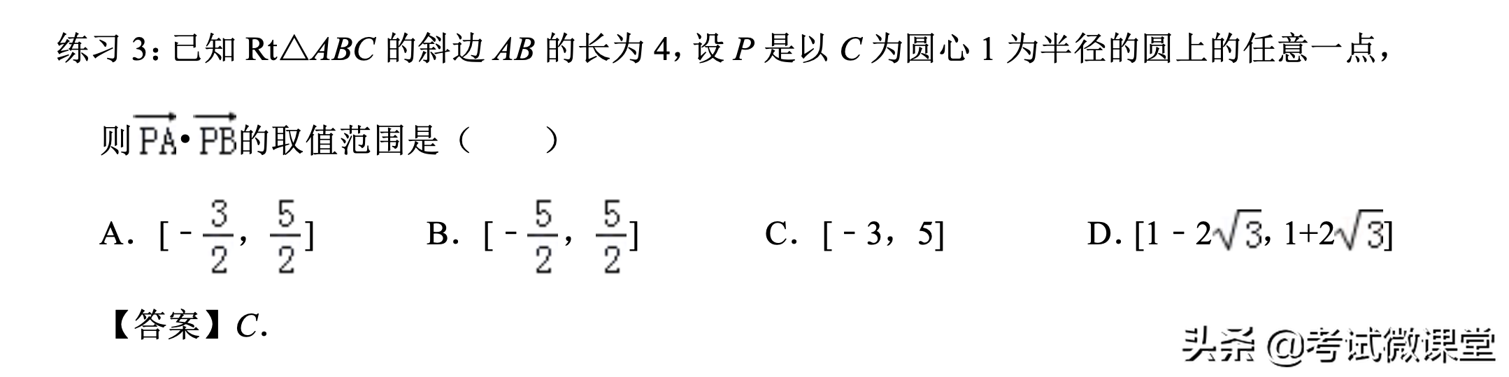 【分析】此题是最值问题,标准答案是坐标法。计算量较大,此时利用极化恒等式直接将数量积转化,利用均值非常简单。