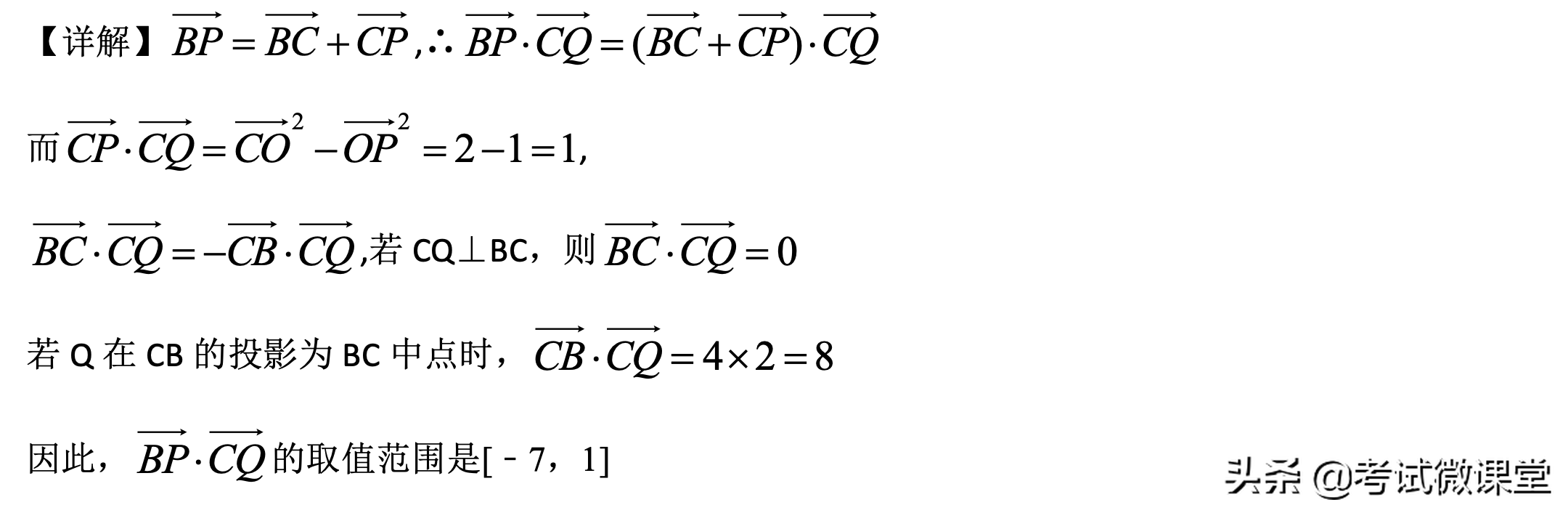 【分析】此题初看是可以使用极化恒等式求解,但学生一经分析便遇到了两个动点的困难,成了许多学生的“拦路虎”,此题需要结合转化的思想,挖掘静态条件,从而进行突破。需要将向量BP转化为向量BC+向量CP处理。