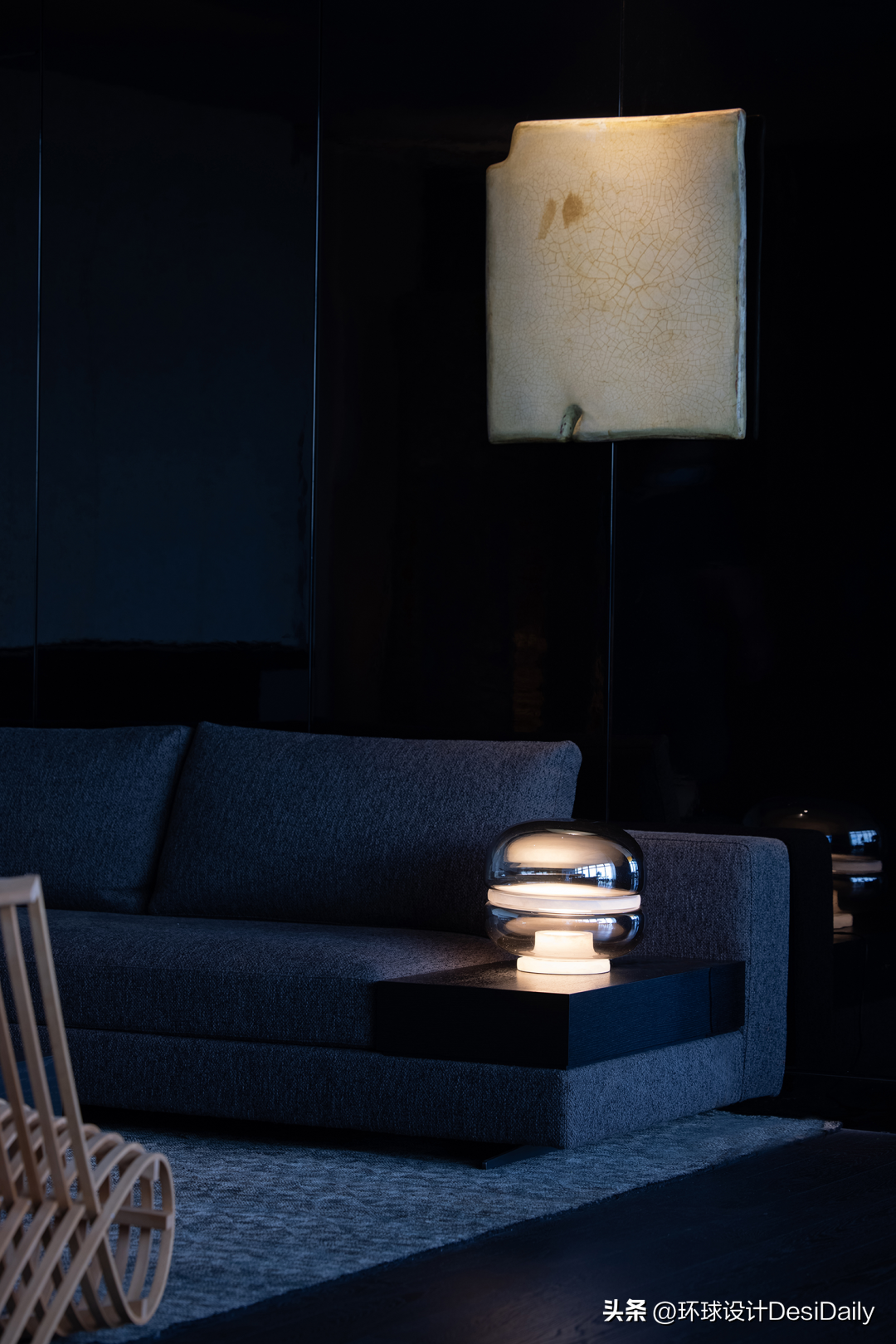 同时,追本溯源,此间,饮食之道回归本质。光被压下来,选用一盏德国occhio灯将光与形纯粹至极。提升用餐氛围,重视灯光对食材的渲染,只点染餐桌区域,让人们的专注点集中在食材和用餐本身上去。